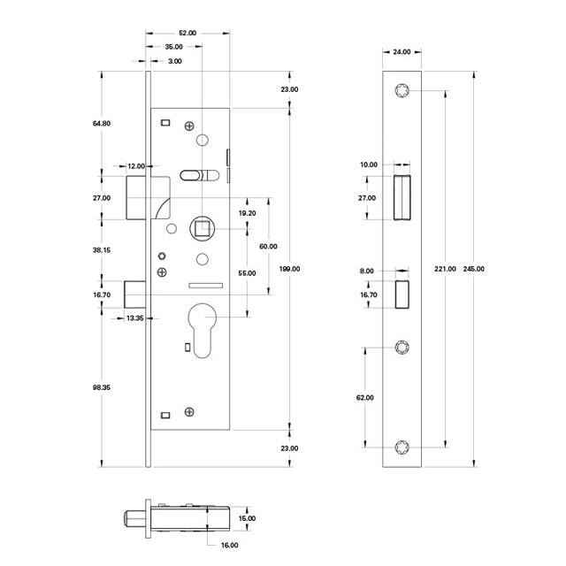 Dit mechanische smal slot is speciaal voor de opdek Nero Legno gemaakt. De voorplaat is ten opzichte van de Nero Legno stompe deuren smaller i.v.m. de aanwezige opdekrand.