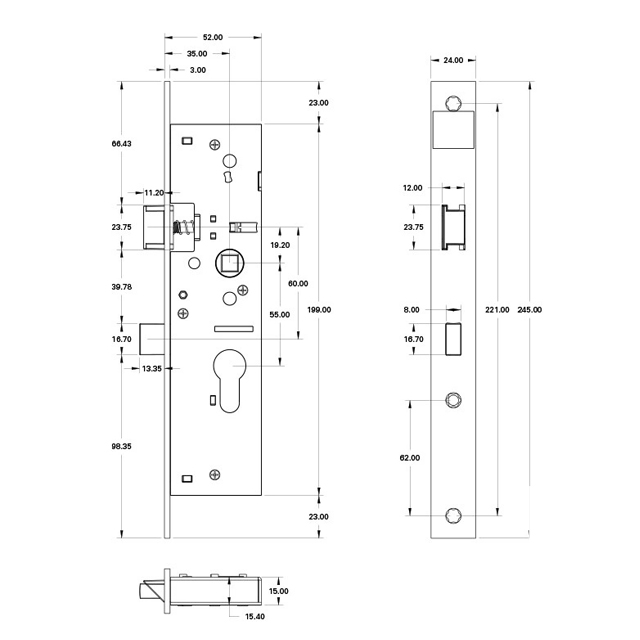 Dit mechanische smal slot is speciaal voor de opdek Nero Legno gemaakt. De voorplaat is ten opzichte van de Nero Legno stompe deuren smaller i.v.m. de aanwezige opdekrand.