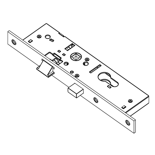 Wil je je binnendeur echt goed af kunnen sluiten, dan kies je voor een cilinderslot. Dit slot heeft een schoot welke wordt bediend door een deurkruk en een rechte schoot die wordt bediend door een profielcilinder waarmee je de deur mee kunt afsluiten. De sluitplaat op het kozijn heeft 2 openingen met verschillende afmetingen. Je herkent een cilinderslot aan een vierkante opening van 8 mm waar de stift van de deurkruk en een uitsparing waar een profielcilinder in past. (los mee te bestellen)