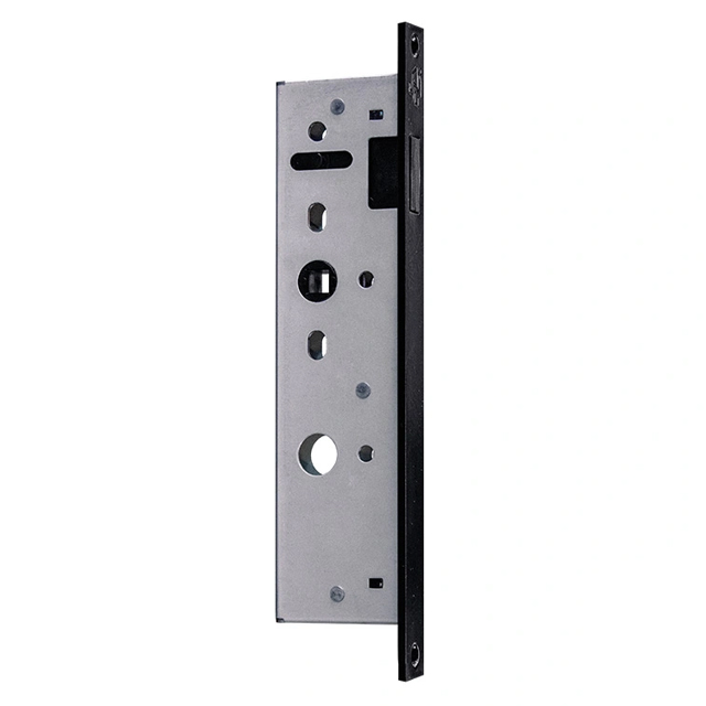 De voorplaat is ten opzichte van de Nero Legno stompe deuren smaller i.v.m. de aanwezige opdekrand. Met dit slot worden standaard twee “magneetpotjes” meegeleverd: daardoor kan het magneetslot worden toegepast in zowel houten als stalen kozijnen.
