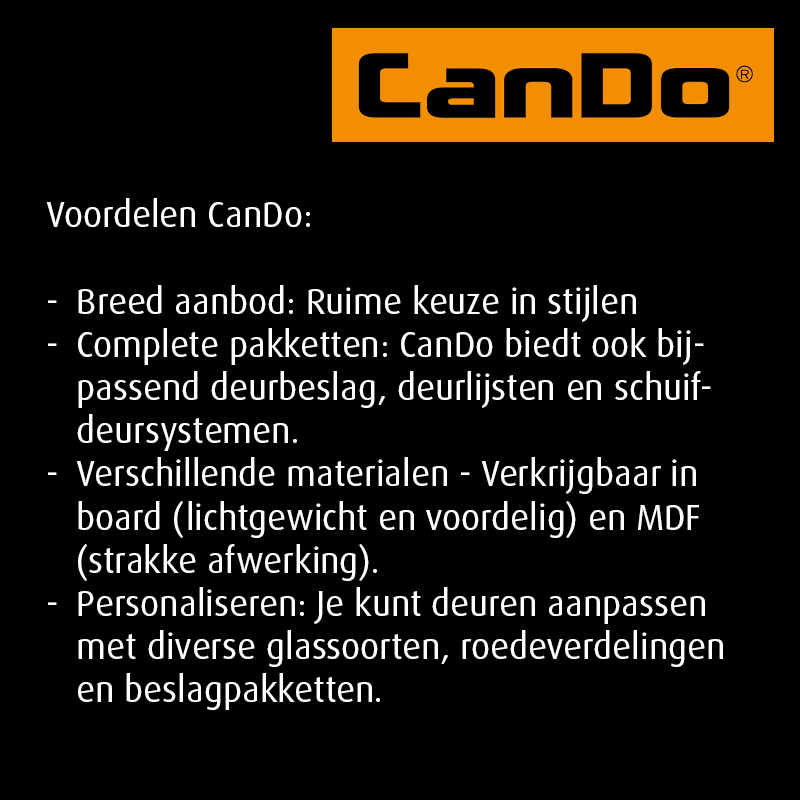 * Cando heeft lage prijzen, bestel je complete deur met snelle levertijd.