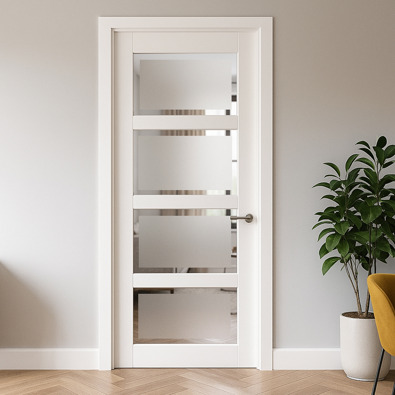 De CanDo PNL1 2B04 Satijn facetglas binnendeur is voorzien van facetprofielen aan de deurstijlen en rondom de facetpanelen in de deur. Dit staat garant voor een tijdloze uitstraling wat kenmerkend is voor alle deuren uit de CanDo Panel Classic collectie. Binnendeuren uit deze collectie zijn perfect te combineren met elkaar en passen bij elk interieur. Deze sterke MDF-deuren zijn rondom voorbehandeld met een witte grondverf. Licht opschuren, ontvetten en tweemaal aflakken is het advies voor het mooiste eindresultaat. De stijlbreedtes zijn 115 mm inclusief het profiel. Bij deuren van 231.5 zijn de stijlen 130 mm breed inclusief het profiel.