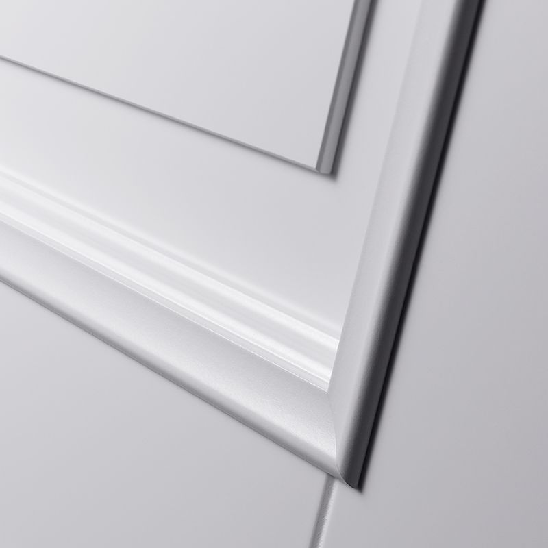 De klassieke uitstraling wordt versterkt door de brede zijstijlen en bovendorpel van 124 mm en de extra hoge onderdorpel van 144 mm. Het opvallende klassieke profiel van 25 mm hoog geeft de deur echt body, waarbij de vlakke rand rondom het paneel (35-42 mm) het design helemaal compleet maakt. Bovendien is de deur direct klaar voor montage: het krukgat is precies op de standaardhoogte van 1050 mm geboord.