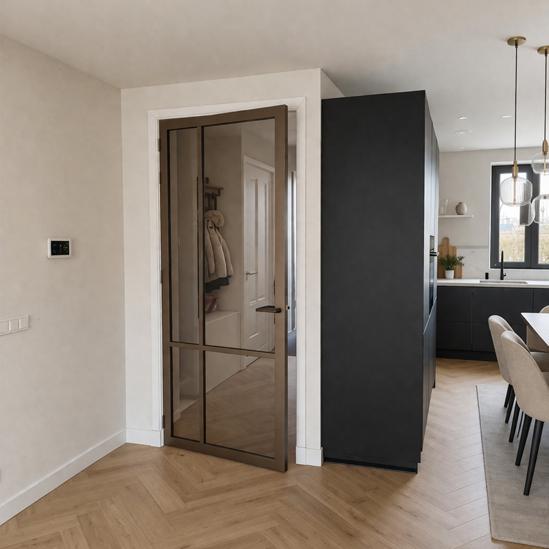De industriële trend krijgt een luxe impuls met de komst van de Svedex Nova Design in brons. De Svedex NDB903 Brons brons glas deur combineert het immens populaire zwarte lijnenspel met een warme bronstint, wat direct sfeer en glamour in het interieur brengt. Kenmerkend voor de Nova Design-collectie is het royale glasoppervlak, wat zorgt voor een open uitstraling en een prachtige lichtinval in elke ruimte. Met een keuze uit vier verschillende glassoorten is er altijd een uitvoering die perfect aansluit bij de gewenste woonstijl.